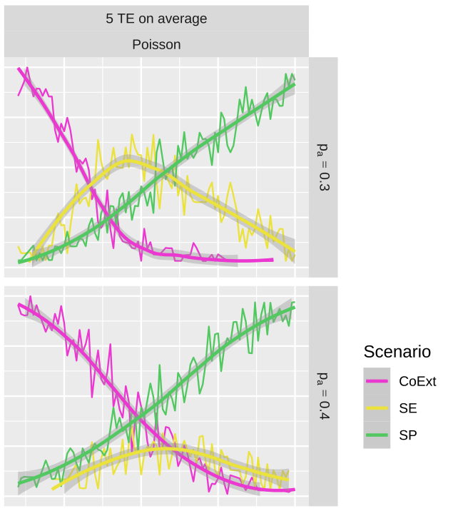 Persistance of TEs in genomes (Stable Equilibrium) depending on the deleterious effect .¶